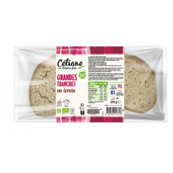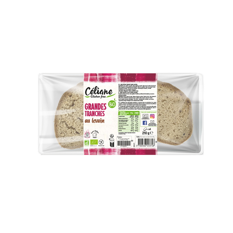 'Eau, amidons de maïs*, blanc d'uf en poudre*, farine de riz*, huile de tournesol*, farine de graines de lin partiellement déshuilée*, fibres de psyllium*, farine de sarrasin*, levain déshydraté de sarrasin* 3%, vinaigre de cidre*, levure de boulanger : Saccharomyces cerevisiae, sel marin.