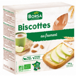 Farine de blé* type 65, huile de tournesol*, sucre*, levure boulangère, germe de blé*1,2%, sel, gluten de blé*, agent de traitement de la farine : acide ascorbique. *Issus de l'agriculture biologique.