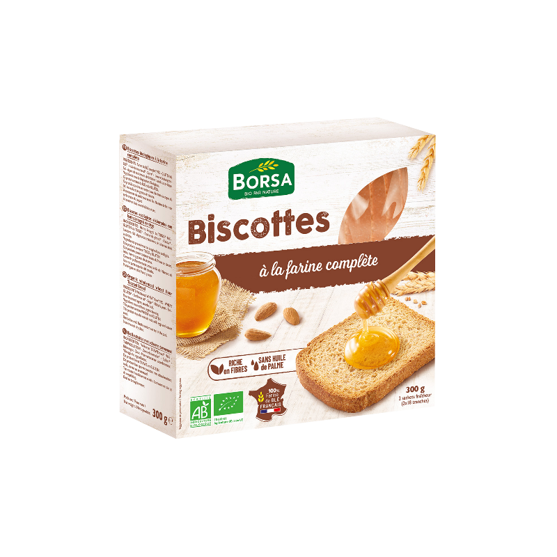 Farine de blé complet* (89%), gluten de blé*, huile de tournesol*, sucre*, levure boulangère, sel, agent de traitement de la farine: acide ascorbique. *Ingrédients issus de l'agriculture biologique.
