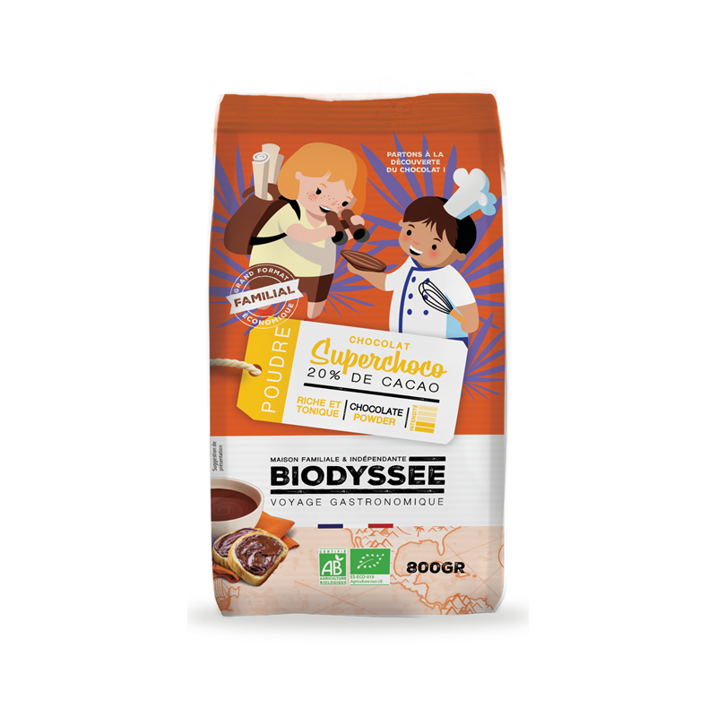 Sucre* de canne non raffiné (80%), cacao* maigre en poudre (20%) *Ingrédient issu de l'agriculture biologique