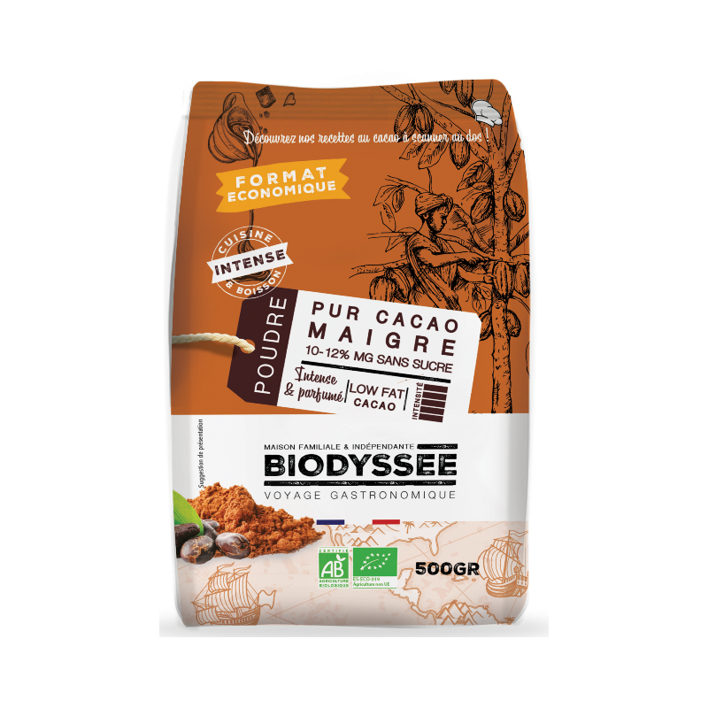 Notre pur cacao maigre 10-12% de matière grasse est un assemblage de variétés dAmérique Centrale. Parfumé, il apporte un goût intense et subtil aux préparations culinaires. Il est idéal pour la confection de recettes de pâtisserie, confiserie, entremets et bouchées au chocolat ou d'un bon chocolat chaud.