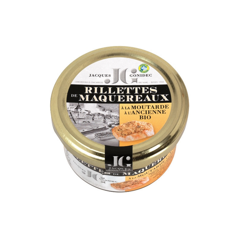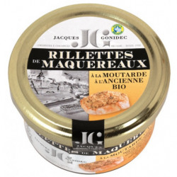Chair de maquereaux 58%, eau, moutarde à lancienne* 13% (eau, graines de moutarde*, vinaigre d'alcool*, sel), huile de tournesol*, oignons* réhydratés, marinade* (vinaigre de vin blanc*, vin blanc Muscadet* [sulfites], eau, vinaigre dalcool*), stabilisants : gommes de guar* et de caroube*, sel.