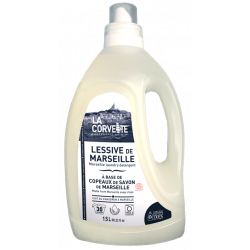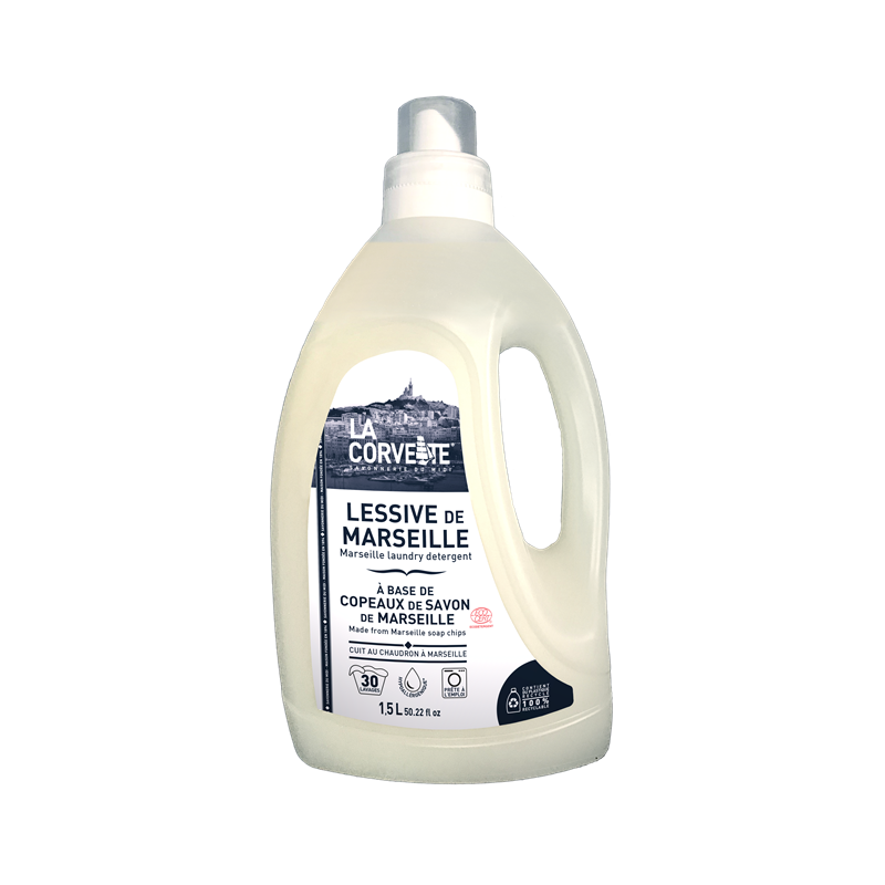 Lessive de Marseille fabriquée à base de copeaux de Savon de Marseille saponifié au chaudron à Marseille. Cette lessive prête à l'emploi est formulée sans parfum. Elle peut être utilisée pour un lavage à la main ou un lavage en machine dès 30°C. Cette lessive est hypoallergénique car formulée sans parfum et sans substance actuellement répertoriée comme responsable d'allergie cutanée selon la liste des 26 allergènes établie par l'UE. 99.50% du total des ingrédients de cette lessive sont d'origine naturelle et ce détergent est certifié par Ecocert Greenlife.