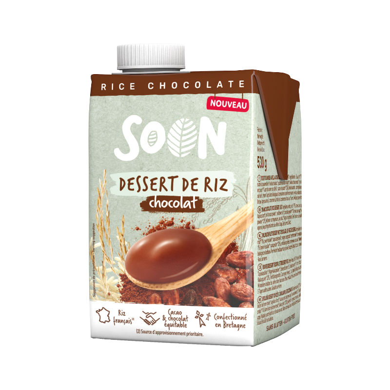 Eau, riz* 15%, sucre de canne non raffiné*, fécule de tapioca*, poudre de cacao maigre*°, huile de tournesol*, chocolat en poudre*° 1% (sucre de canne non raffiné*, cacao en poudre* 32%), épaississants : carraghénanes, sel marin. *Ingrédient issu de l'agriculture biologique