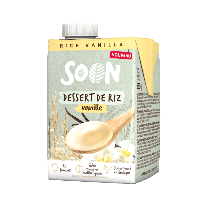 Eau, riz* 16%, sucre de canne non raffiné*, amidon de riz*, huile de tournesol*, arôme naturel de vanille*, épaississants : carraghénanes, concentré de