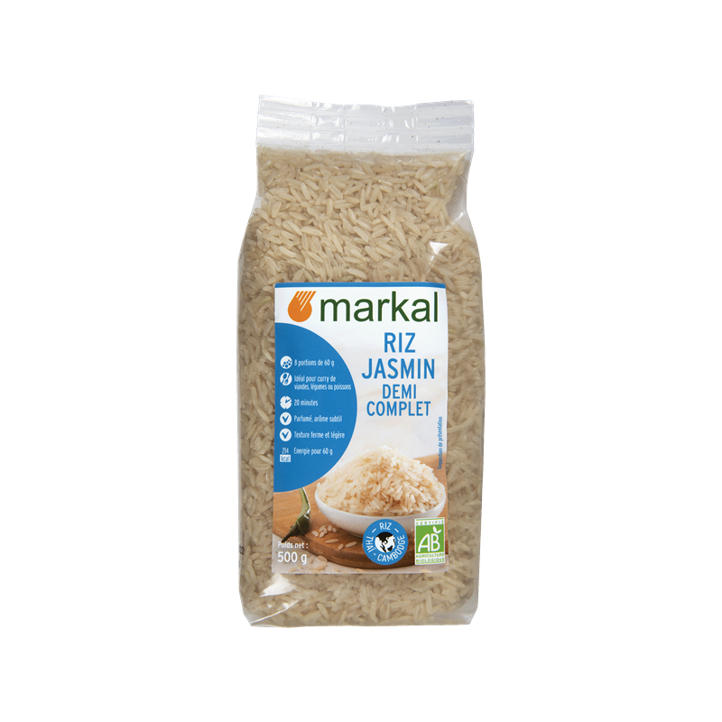 Riz Jasmin demi-complet long grain biologique de qualité supérieure.