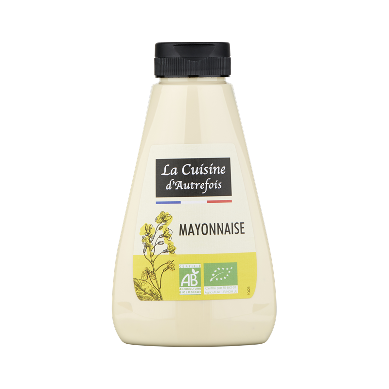 Huile de tournesol désodorisée* 77 %, jaune d'uf pasteurisé*, vinaigre de cidre*, eau, moutarde de Dijon* (eau, graines de moutarde*, vinaigre de cidre*, sel), sel, jus concentré de citron*, épaississants : gomme de xanthane et gomme de guar*.