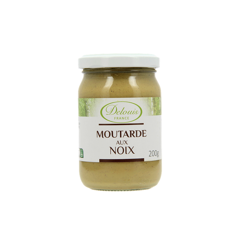 Graines de moutarde*, vinaigre dalcool*, eau, pâte de noix* (12%) (noix* (7%), eau, huile de tournesol*), sel, arôme naturel de noix. *Issus de lagriculture biologique.