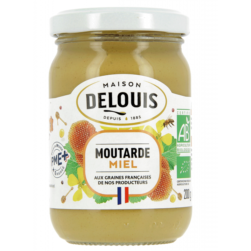 Graines de moutarde*, vinaigre dalcool*, eau, miel* (10%), sel. * Issu de lagriculture biologique.