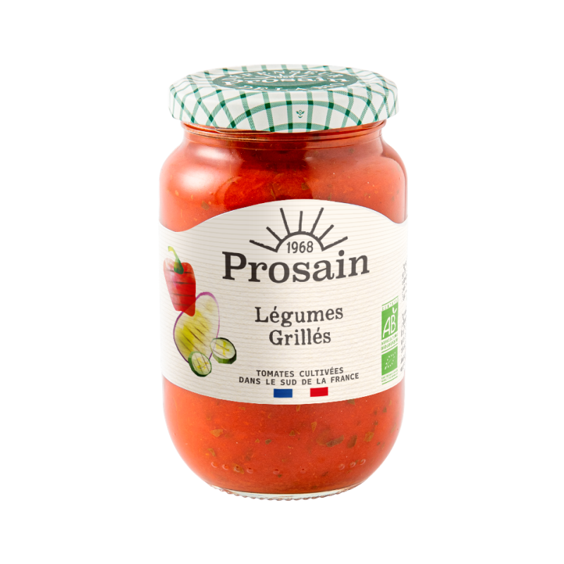 Tomate* 48% (coulis*, cubes*, double concentré*), eau, poivrons rouges* grillés 8%, aubergines*