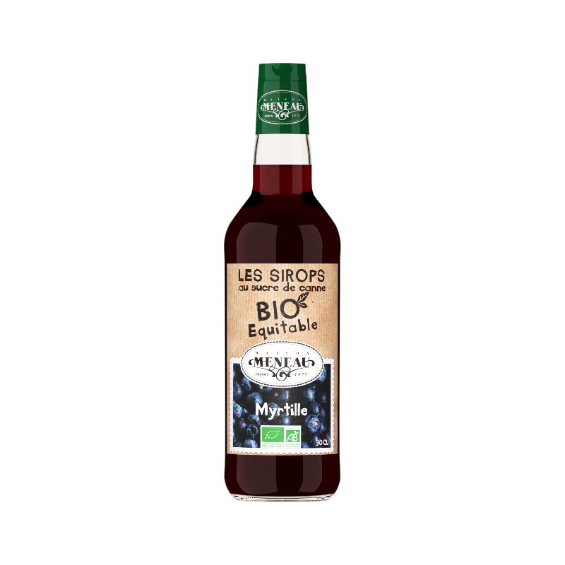 Sucre de canne Bio d'Amérique du Sud*, eau, jus concentrés de fruits Bio (myrtille Bio 11%, citron Bio), arôme naturel de myrtille Bio. ,*85% du total des ingrédients sont issus du commerce équitable