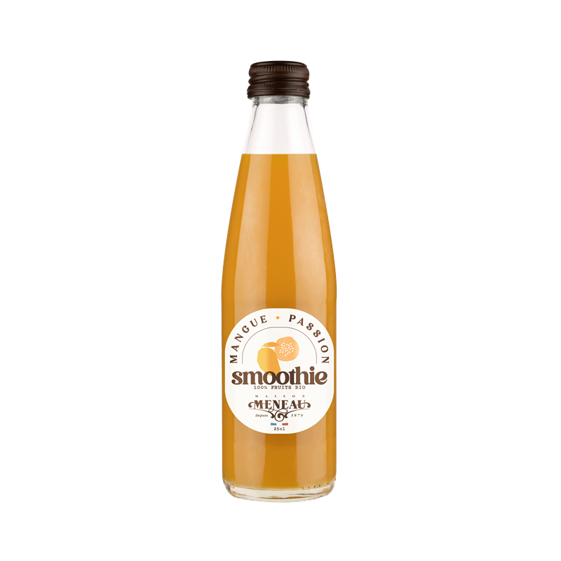 Purée de mangue Bio 25%, purs jus de fruits Bio (pomme Bio, fruits de la passion Bio 19%, orange Bio), purée de banane Bio