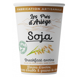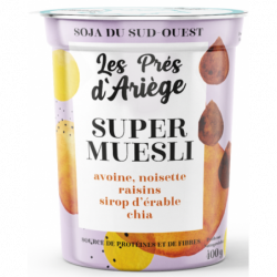 Soja brassé, sucré, aux flocons d'avoine, noisettes, raisins et chia 400g