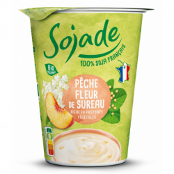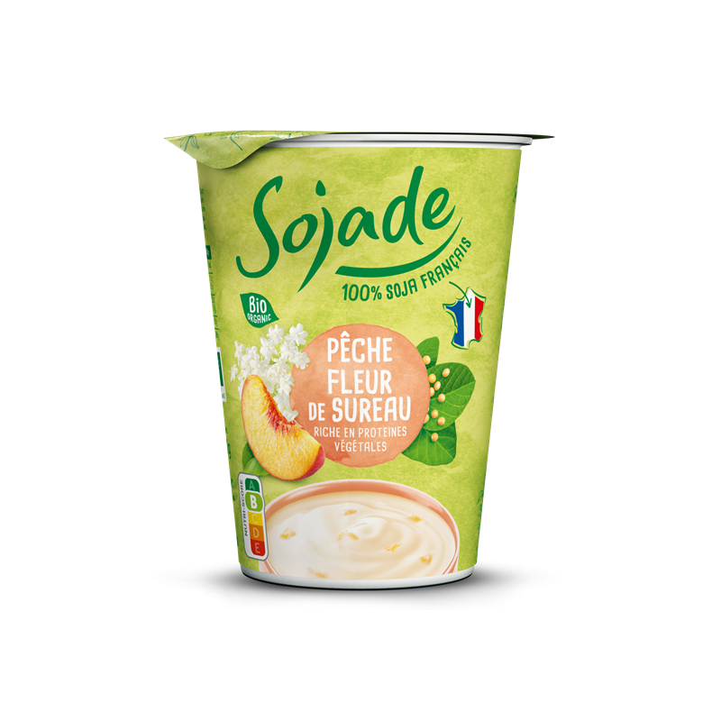 Jus de soja* 78% (eau, graines de soja* 10,8%), pêche* 10%, sucre de canne non raffiné*, amidon de tapioca*, arôme naturel de pêche*, arôme