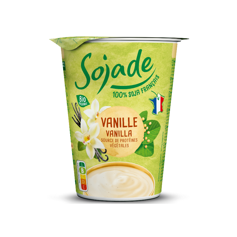 Jus de soja* 78% (eau, graines de soja* 10,8%), eau, sucre de canne non raffiné*, amidon de maïs*, arôme naturel de vanille*, épaississant : gomme
