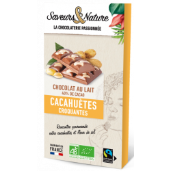 Chocolat lait 40% de cacao à la fleur de sel de Guérande, cacahuètes 100g