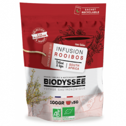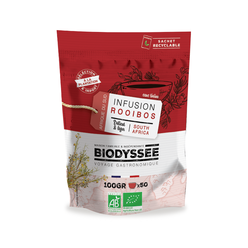Notre Rooibos est sélectionné et importé directement depuis les plantations en Afrique du Sud. Caractérisé par sa coupe fine et longue, il offre une infusion gourmande rouge vif au goût délicatement vanillé. Riche en sels minéraux et antioxydant, le rooibos peut être consommé tout au long de la journée grâce à son absence de théine
