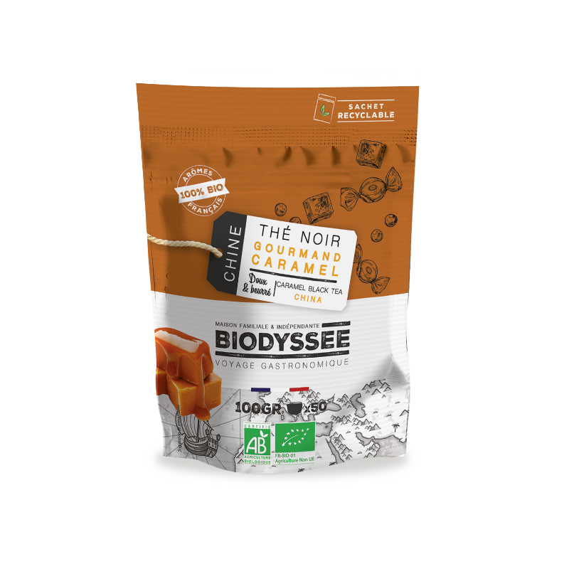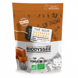 Notre thé noir gourmand caramel est sélectionné et importé directement depuis les plantations en Chine. Il allie lintensité et la rondeur du thé noir aux notes crémeuses de caramel au beurre salé pour vous offrir un mélange gourmand, à déguster idéalement au petit-déjeuner ou dans laprès-midi.
