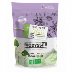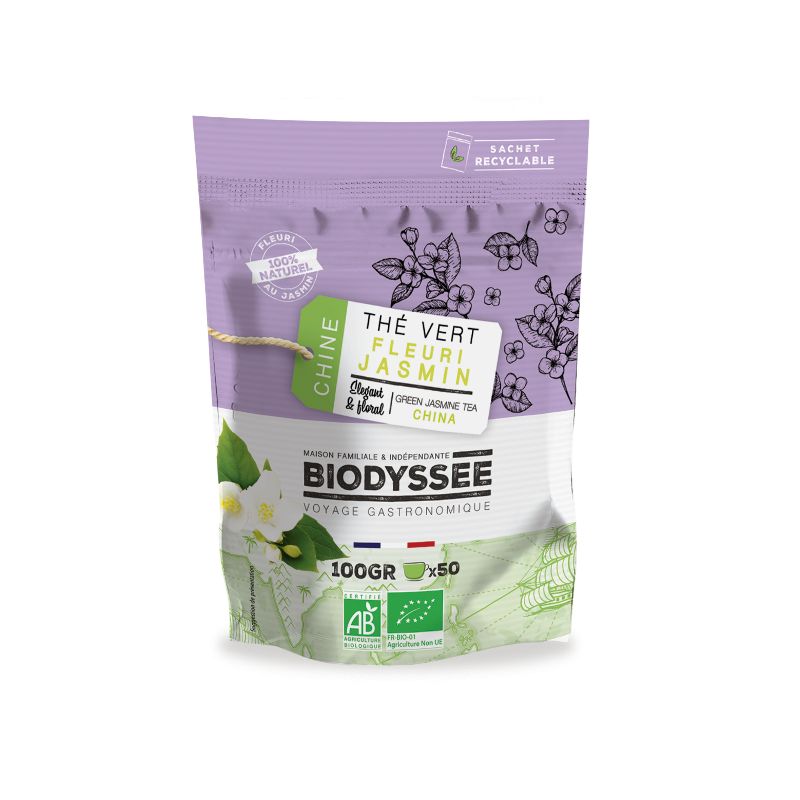 Notre thé vert fleuri jasmin est sélectionné et importé directement depuis les plantations en Chine. Cette tradition ancestrale chinoise consiste à sécher les feuilles de thé aux côtés de fleurs de jasmin fraîchement cueillies pour parfumer naturellement le thé. Cette association offre une tasse intense et élégante.