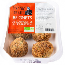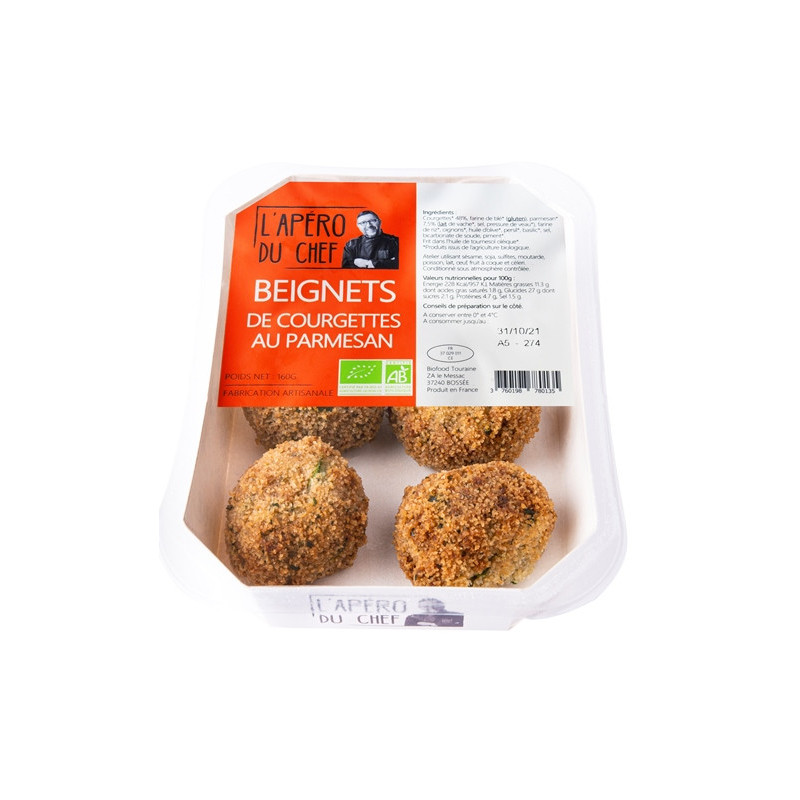 Courgette*, Farine de Blé*, Parmesan*, Farine de Riz*, Oignon*, Huile d'Olive*, Persil*, Basilic*, Sel, Bicarbonate de Soude, Piment*, Huile de Tournesol Oléique*. *Ingrédient Issu de l'Agriculture Biologique.