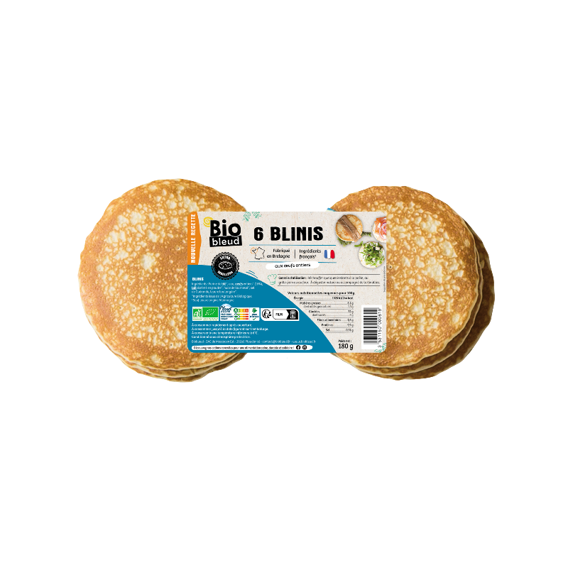 Farine de blé*, eau, ufs entiers*, lait écrémé en poudre*, huile de tournesol*, sel de Guérande, poudres à lever* (amidon de maïs*, carbonates de sodium, acidifiant : tartrates de potassium), levain de froment* déshydraté et dévitalisé.