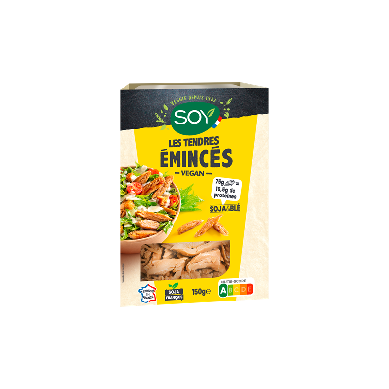 Eau, farine de soja*(1) deshuilé* 27,4%, gluten de blé* 8,1%, vinaigre de cidre*, huile d'olive* vierge extra*, extrait de levure*, épices*, sel de mer.(*) Ingrédients issus de l'Agriculture Biologique