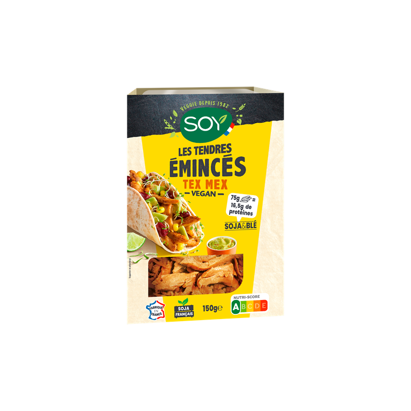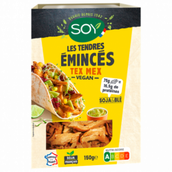 Eau, farine de soja*(1) déshuilé* 27%, gluten de blé* 7,9%, épices*, concentré de tomates* 1,7%, huile de tournesol* désodorisée, sel de mer, ail*, poudre de betterave*.(*) Ingrédients issus de l'Agriculture Biologique