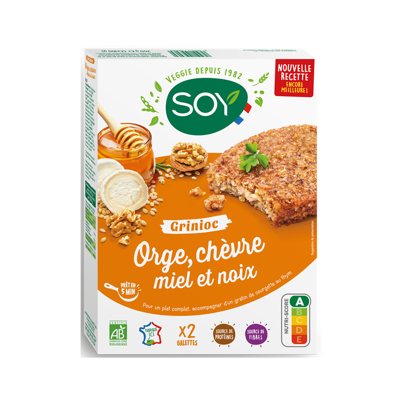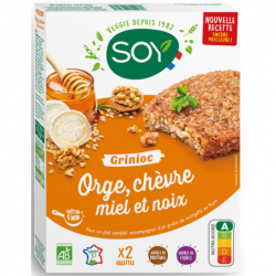 Boulgour d'orge* complet cuit 36,6% , boulgour de blé complet* réhydraté 29%, oignons*, farines de blé* 5,3%, huiles* végétales (huile de tournesol oléique* désodorisée, huile de tournesol*), fromages de chèvre* 4,9%, flocons d'avoine complète*, flocons de blé complet* 3,9%, gluten de blé* 2,9%, miel* 2,9%, noix* 2%, graines de pavot*, sel de mer, poivre*. (*) Ingrédients issus de l'Agriculture Biologique