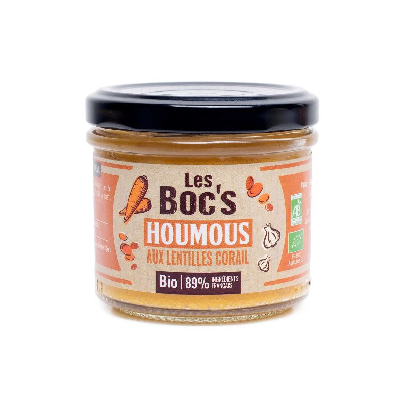 Lentille corail* ; Carotte* ; Jus de Citron* ; Huile de Tournesol* ; Huile d'Olive extra vierge* ; Ail frais* ; Sel ; Cumin* ; Piment doux* - *issus de l'Agriculture Biologique