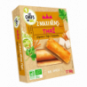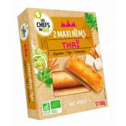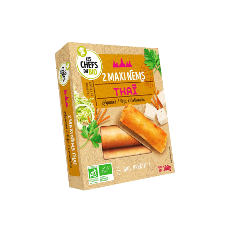 Galette* 42,3% (eau, farine de riz*, farine de blé*, huile de tournesol* désodorisée, sel de mer), oignons* 18,1%, carottes* 14,8%, tofu* 14,1% (eau, soja*, agents de coagulation : sulfate de calcium, nigari), choux* 8,1%, vermicelles de blé*, huiles végétales* désodorisées (tournesol oléique*, tournesol*), sauce de soja* (eau, soja*, blé*, sel de mer, ferment), feuilles de coriandre*, champignons noirs déshydratés* 0,7%, sel de mer, épices*, ail*. (*) Ingrédients issus de l'Agriculture Biologique