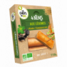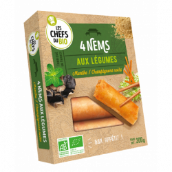 Galette* 44,3% (eau, farine de riz*, farine de blé*, huile de tournesol* désodorisée, sel de mer), oignons* 24,2%, carottes* 19,7%, choux* 10,7%, vermicelles de blé*, huiles végétales* désodorisées (tournesol oléique*, tournesol*), sauce de soja* (eau, soja*, blé*, sel de mer, ferment), menthe* douce 1,2%, champignons noirs déshydratés* 0,9%, ail*, sel de mer, gingembre* en poudre. (*) Ingrédients issus de l'Agriculture Biologique