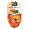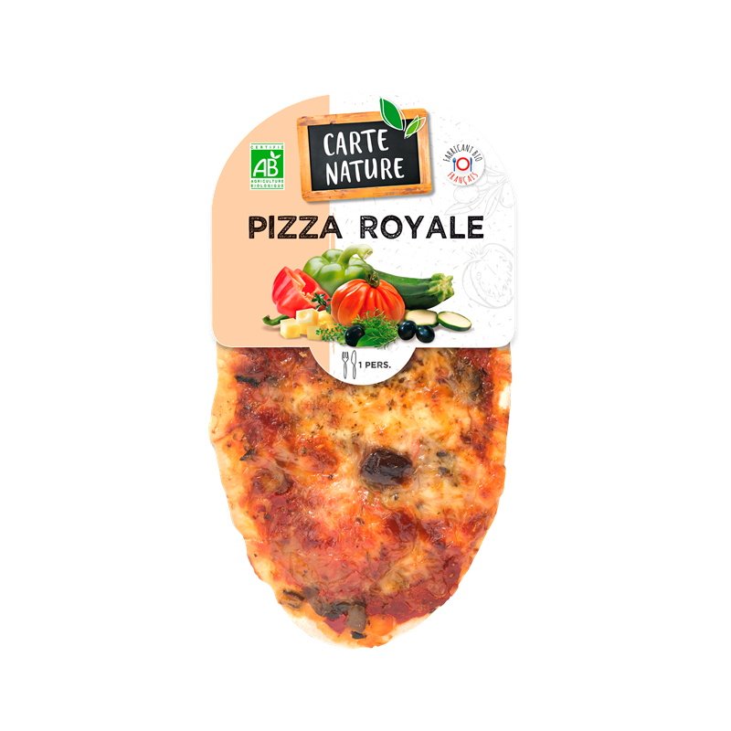 Garniture* 49% : sauce tomate* cuisinée 17% (purée de tomate* 12%, eau, oignons*, huile de tournesol*, Sel, persil*, basilic*, ail*, poivre*, origan*, herbes de Provence*), emmental* 15%, champignons* 7,7%, courgettes* 3,8%, poivrons* 3,8%, olives noires* 2,6%, origan*. (*) Ingrédients issus de l'Agriculture Biologique