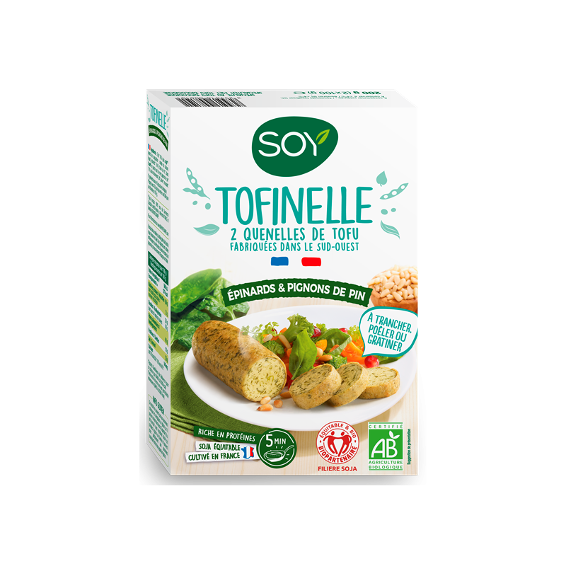 Tofu* 70% (eau, soja*(1) , agents de coagulation : sulfate de calcium, nigari), épinards* 16,4%, farine de riz*, blanc d'uf* en poudre, sel de mer, pignons de pin* 1,1%, huile de tournesol*, ail*, muscade*, poivre*.(*) Ingrédients issus de l'Agriculture Biologique