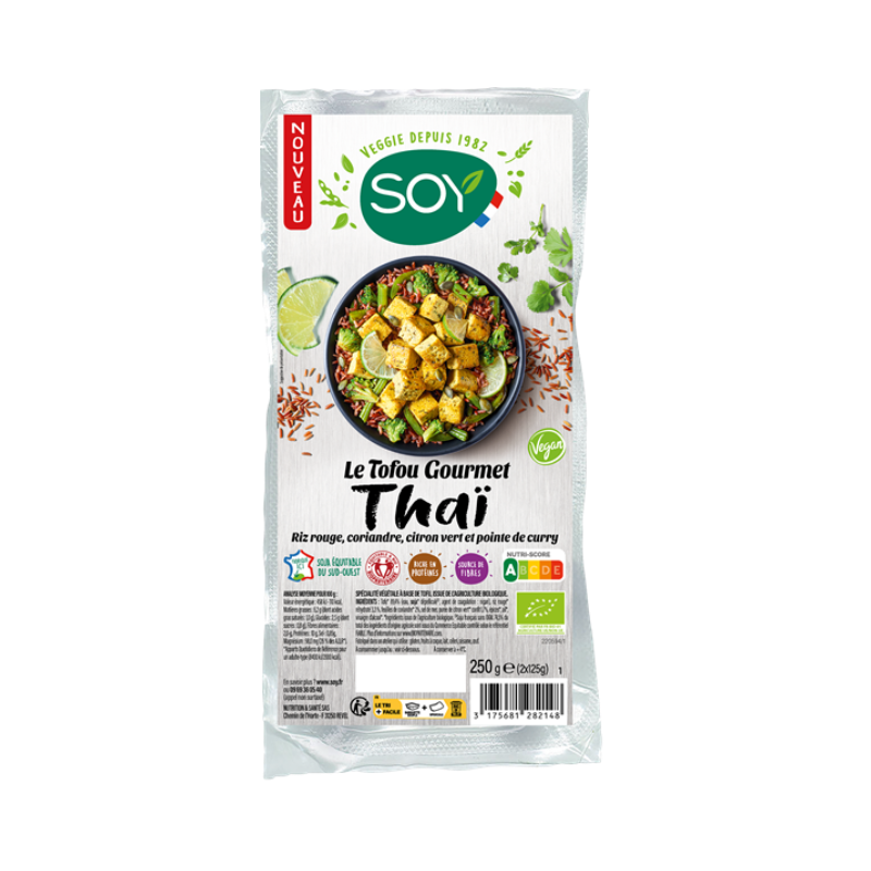 Tofu* 89,4% (eau, soja* dépelliculé(1) , agent de coagulation : nigari), riz rouge* réhydraté 3,3 %, feuilles de coriandre* 2%, sel de mer, purée de citron vert* confit 1,7%, épices*, ail*, vinaigre d'alcool*. (*) Ingrédients issus de l'Agriculture Biologique