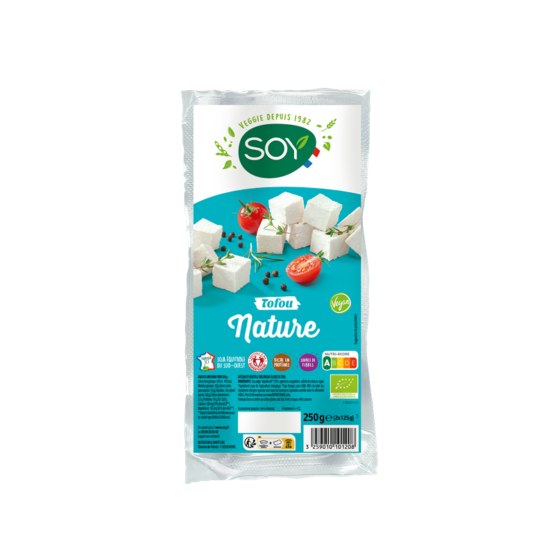 Eau, soja* dépelliculé(1),27,5%, agents de coagulation : sulfate de calcium, nigari (*) Ingrédients issus de l'Agriculture Biologique