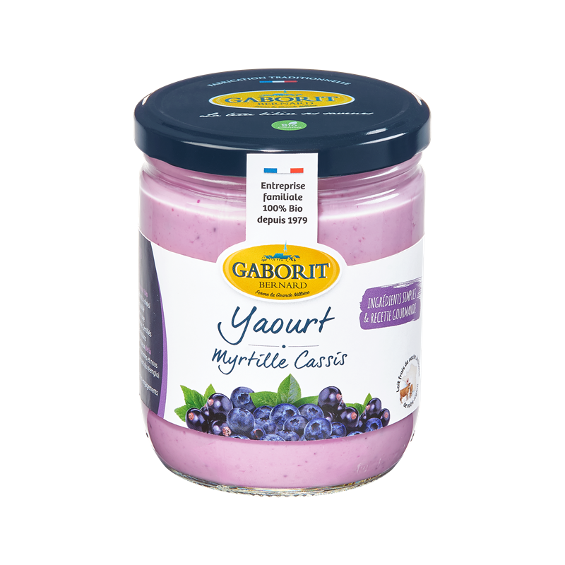 lait entier de vaches Jersiaises pasteurisé au bain-marie*, 14% de préparation de fruits* (4.9% myrtilles sauvages*, 2.1% cassis*, sucre de canne*), sucre de canne roux non raffiné*, ferments lactiques.