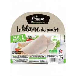 BIO France Blanc de poulet 2 tranches sans sel nitrité 80g LE PICOREUR 66.00 € / kg 5,28 € / la pièce radio_button_unchecked shopping_cart 0