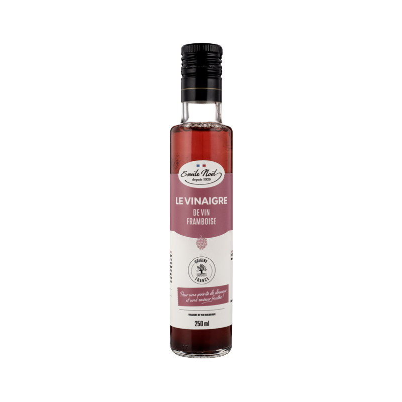 VINAIGRE DE VIN ROUGE* (98.5%), AROME NATUREL DE FRAMBOISE* (1.5%)§* Produits issus de lAgriculture Biologique§Le vinaigre est fabriqué avec du vin biologique. Non pasteurisé.