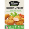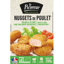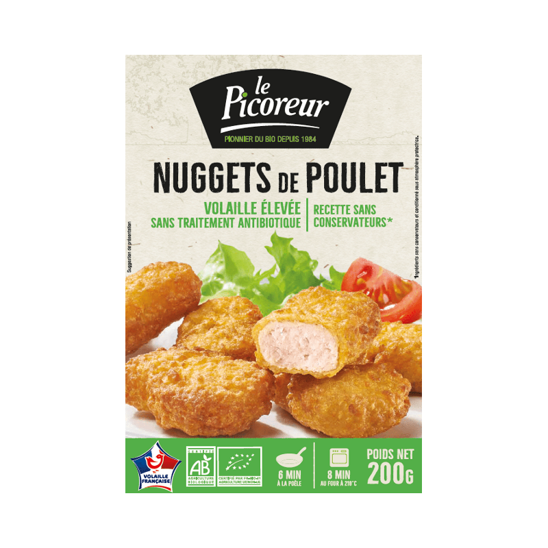 Ingredients : viandes (poulet* 37%, dinde*) (origine France), eau, chapelure (farine de BLE*, levure*, sel), farine de BLE*, amidons (BLE*, mais*), fibre*, sel, fecule*, dextrose*, epices*, ail*, poivre*, poudres a lever : acide citrique et carbonates de sodium. Huile de tournesol*.